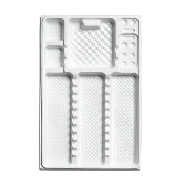 Disposable tray with multiple compartments to hold permanent makeup tools and substances. Very useful for keeping tools tidy and organised. Separate compartment for microblades, handles, needles, machines 180mm x 280mm Pack...